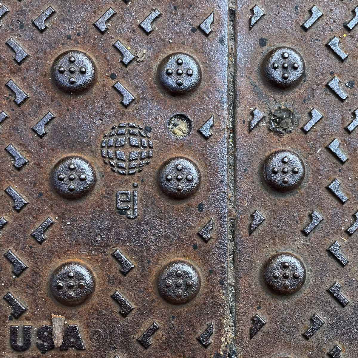 At the corner of the sidewalk you can feel the bumps underfoot, a grid of small button-like forms that mark the area around the crosswalk. The "detectable warning surface" is a solution to aid blind pedestrians to fulfill requirements of the Americans with Disabilities Act. The truncated domes provide a tactile surface, and sometimes are brightly colored as well.