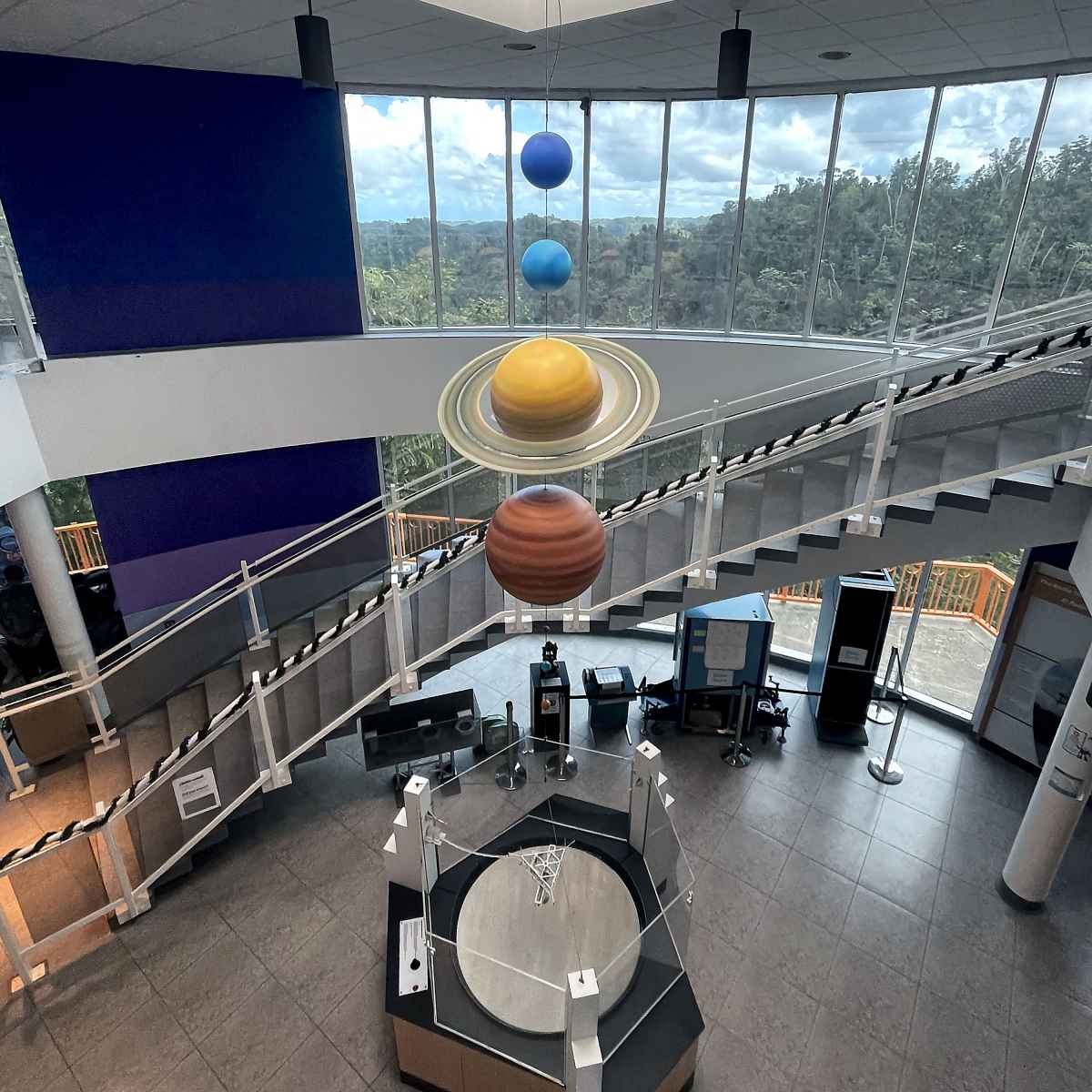 Opened in 1997 in Arecibo, Puerto Rico, the Ángel Ramos Foundation Visitor Center features interactive exhibits and displays about planetary studies, astronomy, atmospheric sciences, and the operations of the Arecibo Telescope. After supporting cables broke under the telescope in 2020, the 1,000 ft spherical reflector dish was decommissioned and ultimately collapsed before it could be repaired. The visitor center operates as an educational facility within the National Astronomy and Ionosphere Center (NAIC) at the site.