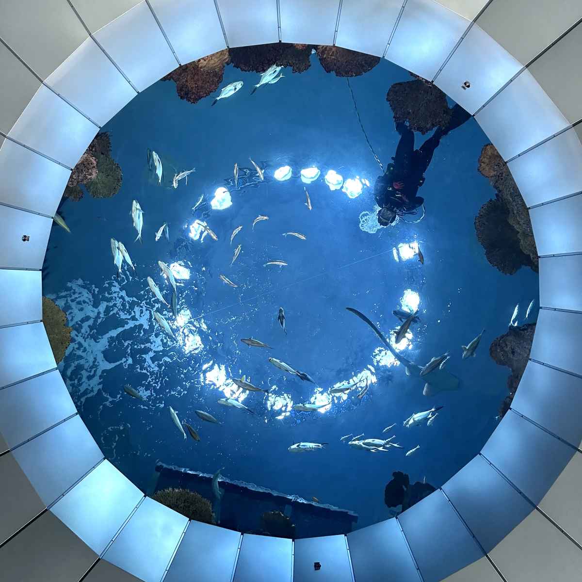 When you look up at The Seattle Aquarium's Underwater Dome exhibit you're treated to a 360-degree Round view of a 400,000-gallon tank filled with Puget Sound fish. You may not expect to see a scuba diver looking back at you. Will they wave back?
